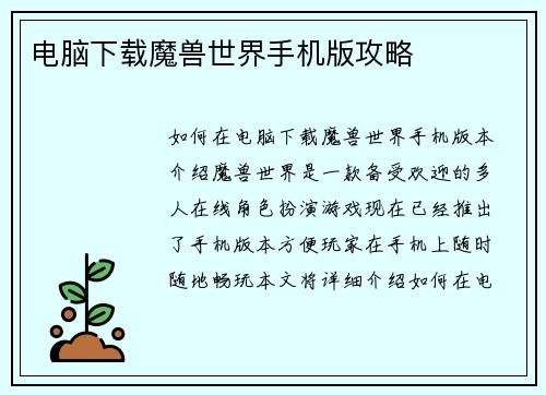 魔兽世界是一款备受欢迎的多人在线角色扮演游戏,现在已经推出了手机版本,方便玩家在手机上随时随地畅玩。本文将详细介绍如何在电脑上下载魔兽世界手机版本,让你可以更加方便地享受游戏的乐趣。