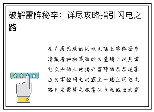 破解雷阵秘辛:详尽攻略指引闪电之路